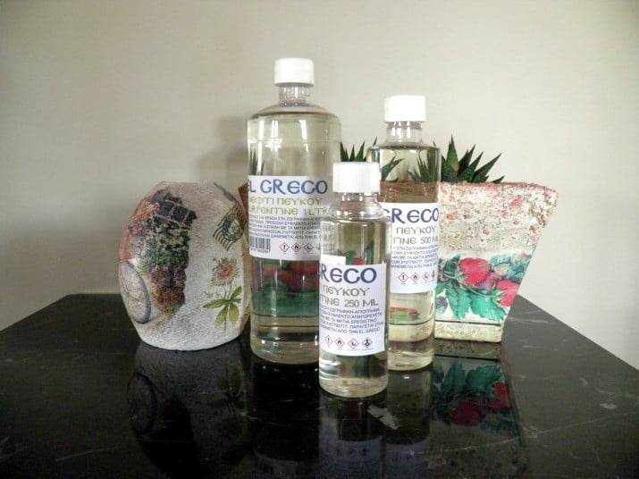 Καθαρό νέφτι πεύκου διαθέσιμο σε συσκευασίες των 250, 500 και 1,000 ml. Εύφλεκτο, ερεθιστικό. Κίνδυνος αναθυμιάσεων. Για αραίωση κυρίως ελαιοχρωμάτων (δεν ματάρει).